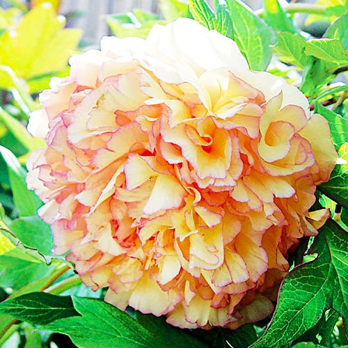 Любой опытный цветовод сразу узнает Пион Kinkaku Jin Ge древовидный. Высота его куста нередко достигает полутора метров. Огромные розово-красные цветы с желтыми краями напоминают летний закат солнца. Глядя на куст издалека, его легко перепутать с апельсиновым деревом. Цветение обильное в конце сезона. Особенностью данного растения является его долгожительство. Оно зимостойко, неприхотливо и устойчиво к болезням. На своей родине в Китае, произрастая в диком виде, пионы легко переносят холодные снежные зимы, потому наш климат для них является вполне комфортным.Цветок, который в диаметре может достигать 25-30 см, благоухает пикантным лимонным ароматом. Высаживают это растение либо под открытым небом, где доступ солнца не ограничен, либо в полутени.