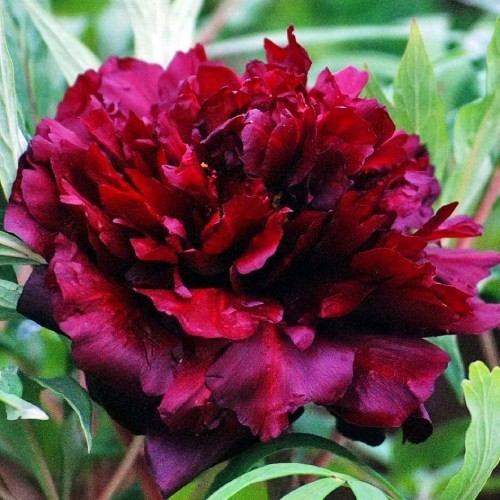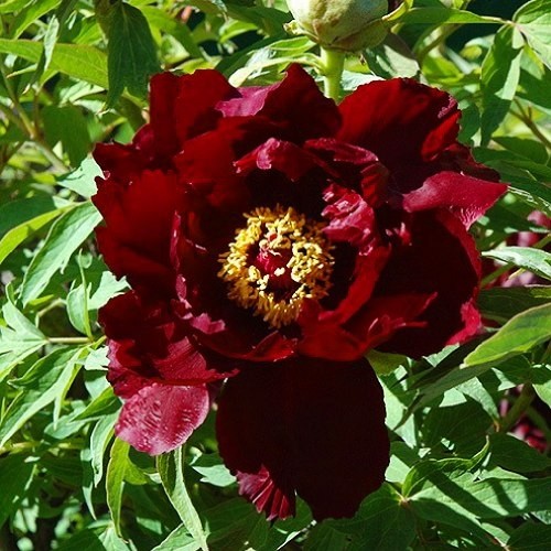 Многолетний пион Black Panther древовидный, выведенный в далеком 1947 году не перестает радовать любителей цветов своей яркой красотой. Его широкие кусты, растущие до 1,5 метра, покрыты по всему периметру обильной зеленью, закрывающей основные стебли. Среди густой листвы изысканно смотрятся темно-красные полумахровые цветы с желтоватой сердцевинкой, имеющие нежный аромат. Их диаметр варьируется в пределах от 10 до 16 см. Высаженное на освещенном месте, растение зацветает уже к средине апреля. Каждый экземпляр закапывается до точки роста в 15-ти сантиметровую ямку. Особенностью этих пионов является возможность их выращивания в контейнерах. Зимние холода этот сорт переносит хорошо.