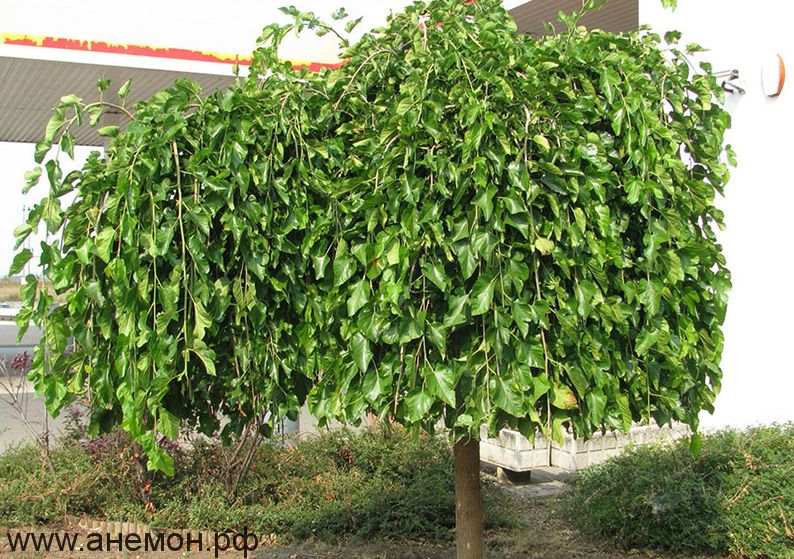 Штамб шакли аниқ танаси ва декоратив тожи (кўпинча "йиғлоқи") бўлган кичик дарахт шаклида ҳосил бўлади. У нафақат мазали резаворлар беради, балки ер майдонини безатади - классик кенг тарқалган дарахтлардан фарқли ўлароқ, минимал жой эгаллайди.