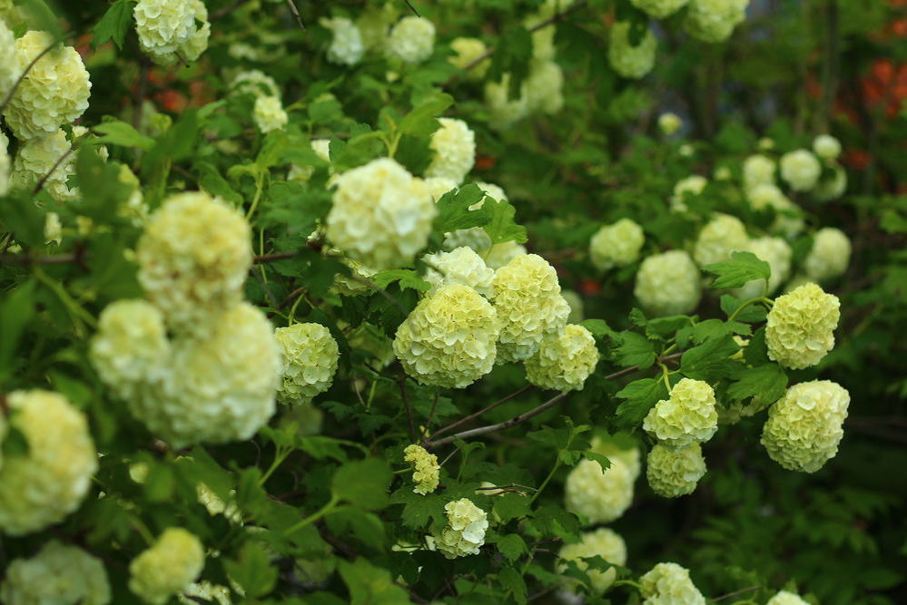 Мўл-кўл гуллаш ва қорли оқ гуллар билан классик   Калина