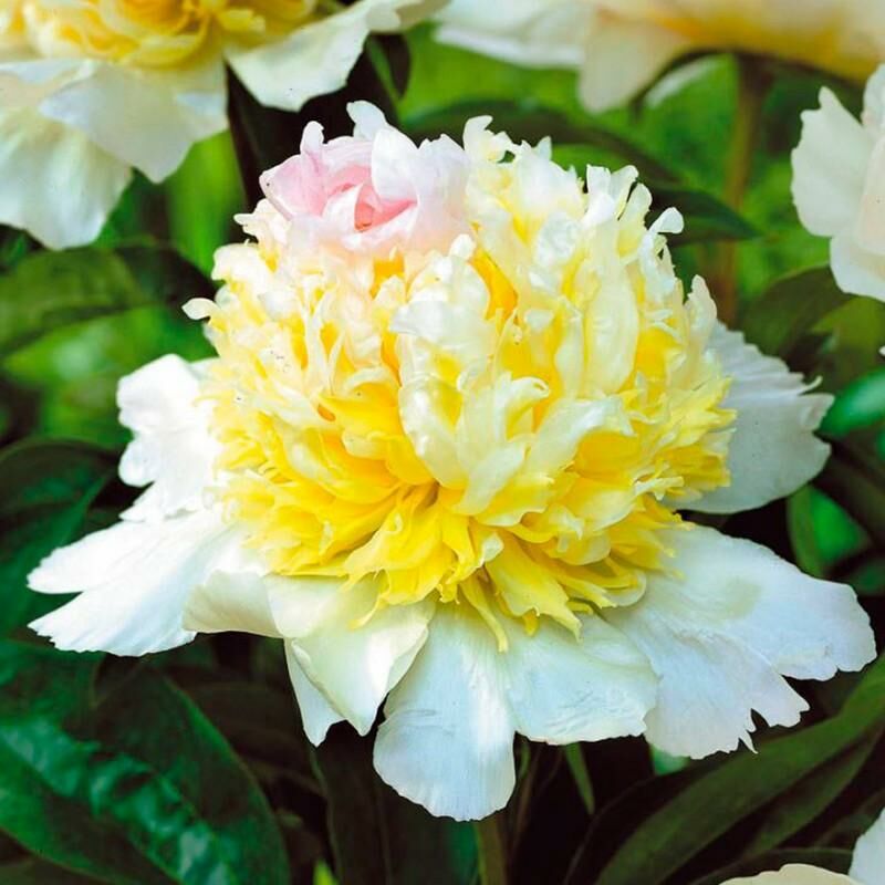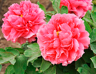 Гуллари поянинг оёқ-қўлларида жойлашган бўлиб, уларнинг диаметри 12-20 см ва ундан кўп. Бундай гуллар эр-хотин, ярим жуфт ва мунтазам бўлади, лекин ундан кам эмас. Улар оқ, бинафша, сариқ, пушти, қип-қизил бўлиши мумкин, шунингдек, иккита рангни бирлаштириши мумкин (масалан, " Киао Систерс " нави). Ёши билан гуллаш кўпроқ бўлади. Дарахт пиони одатдаги ўтли пиондан 2 ҳафта олдин гуллашни бошлайди ва бу гуллаш бир ойгача давом этади! Бу пионлар совуқ ва совуққа чидамли.