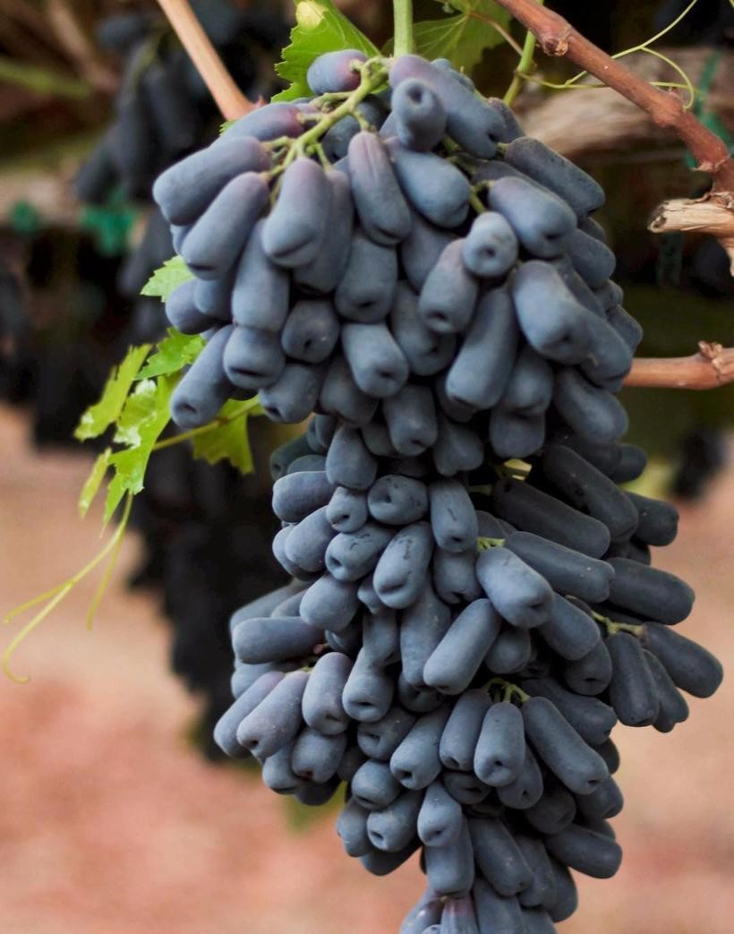 Бессемянный сорт с необычно длинными тёмными ягодами и хрустящей мякотью. Привлекает внимание необычным внешним видом и насыщенным вкусом.