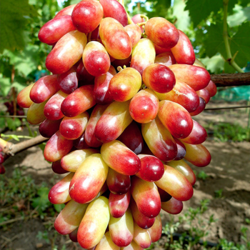 Сорт с удлинёнными ягодами и контрастной красно-тёмной окраской, который сразу привлекает внимание. Хрустящая сочная мякоть, делают его идеальным выбором.