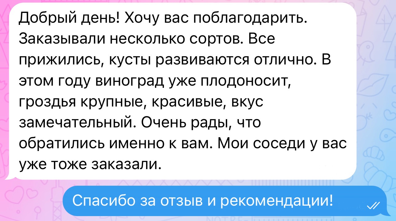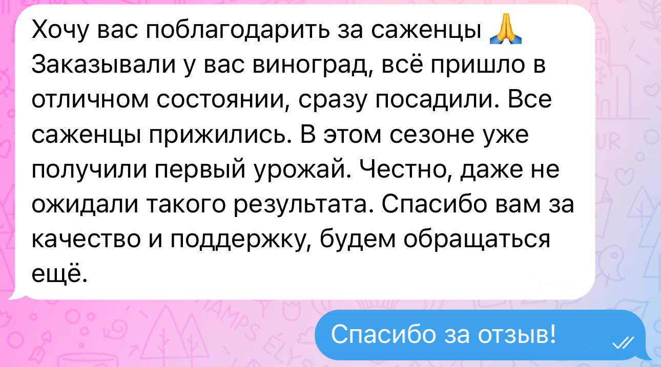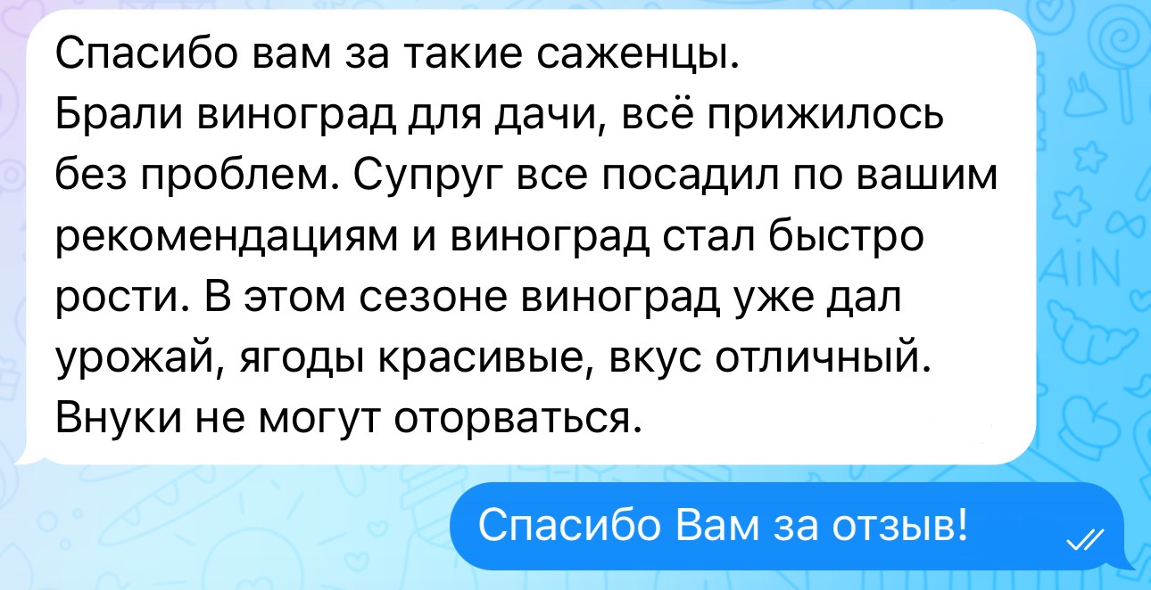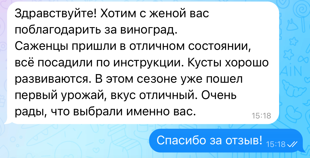 Саженцы выращены с любовью и заботой, чтобы обеспечить здоровый старт вашего виноградника.